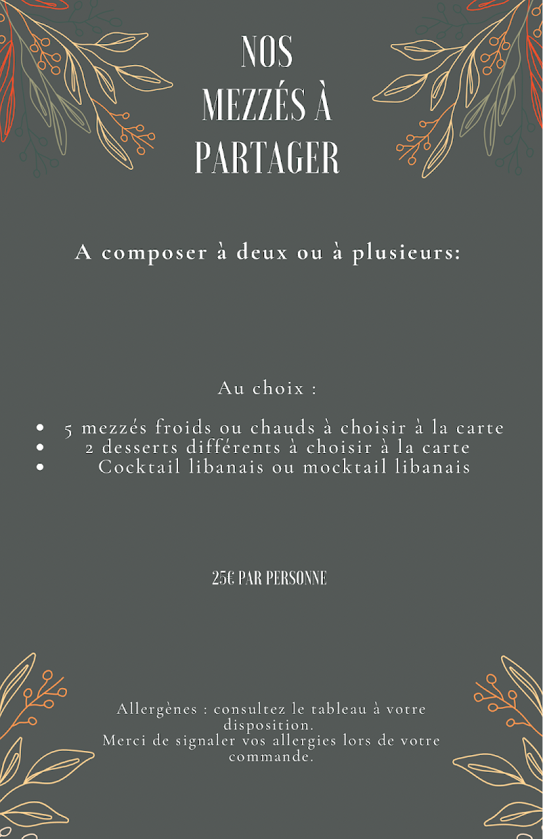 Prepare for a memorable experience at Le Coin Libanais, where each dish invites you to savor the essence of Lebanon.